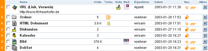 3.1.2 InhaltslisteAbbildung 3.1-2: Inhaltsliste auf einer Ordner-Übersichtsseite