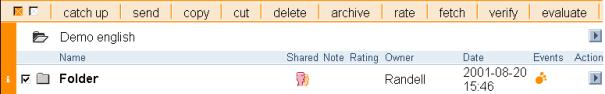 Figure 2: Representation of an object Click the The icon immediately left of the object name denotes the object type. If the object is a Document, the icon may represent its MIME type, if it is a Search Result, the icon informs about the search area and the search engine employed, if it is a Note, the icon may represent a pragmatic aspect picked by the Note's author. Most prominent in each entry is the name of the object. In Fig. 1 each object has been given the name of its object type. Obviously, you should choose names describing the content or purpose of each individual object. Since BSCW is designed to make sharing of information easier, it is very important to use descriptive names which will be understood by the other people sharing the Workspace. Behind the object name BSCW displays
