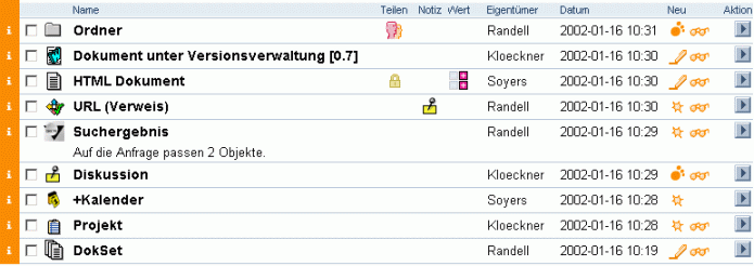 3.1.2 InhaltslisteAbbildung 3.1-2: Inhaltsliste auf einer Ordner-Übersichtsseite
