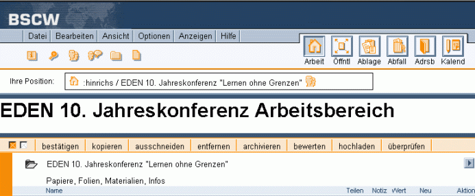 Wenn Sie ein Banner eingefügt haben, könnte der Kopfbereich eines Arbeitsbereiches und der Ordner, die er enthält, folgendermaßen aussehen: Abbildung 4.4-2: Kopfbereich einer Ordner-Übersichtsseite mit Banner Das Banner wird von eingebetteten Ordnern geerbt, es sei denn Sie definieren dort ein neues Banner oder |