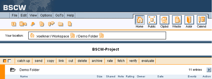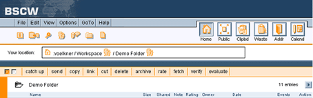 4.4.4 Creating a workspace bannerEvery folder page has a header of several lines (see 3.1). By default, the space below the navigation bar is empty: Figure 4.4-1: Header section of a folder page without banner Here you may insert a banner: