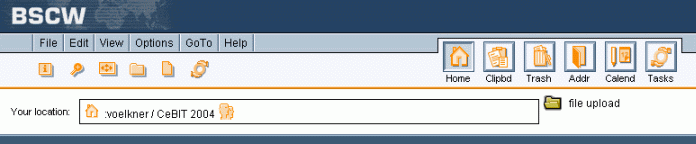 4.2.2.2 Use internal uploaderIf you use a Java-capable browser, you can subscribe to an extension that enables you to upload files by 'drag & drop'. A specific icon will be placed prominently in the headers of your folder pages. Just drop a file onto this icon to upload it to the current folder. The extension also uploads groups of files -- a feature not provided by the standard file upload function of today's browsers. Please note that this feature is not available on all platforms and browsers. If you intend to use this option,
