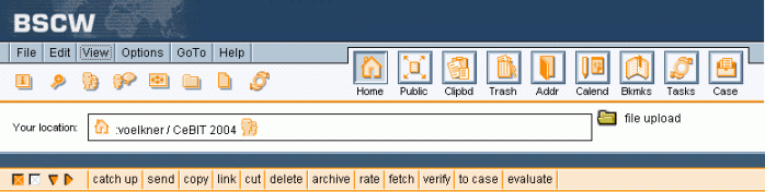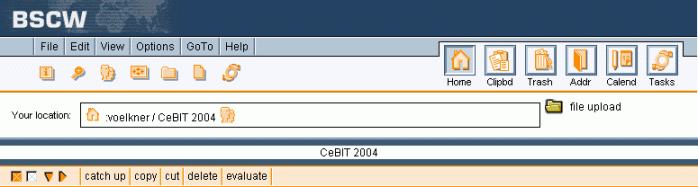 4.4.4 Creating a workspace bannerEvery folder page has a header of several lines (see 3.1). By default, the space below the navigation bar is empty: Figure 4.4-1: Header section of a folder page without banner Here you may insert a banner: