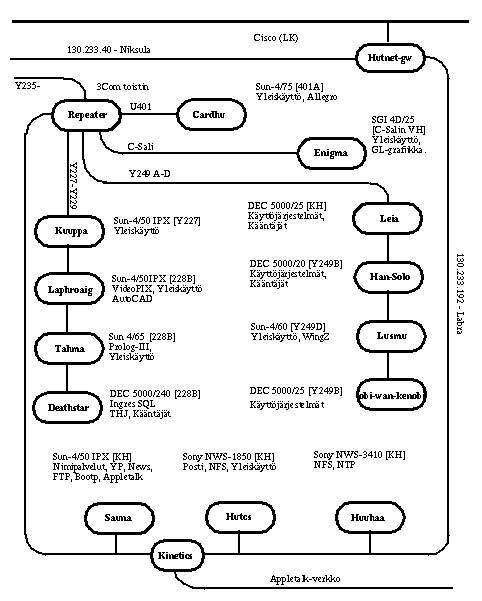 Laboratorion verkossa on UNIX-koneiden lisäksi muutamia PC- ja