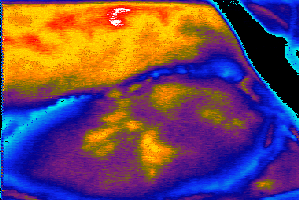 IR imaging is based on the subject's own heat production, and the method is thus noninvasive. A standard IR camera can be used, typically with spatial resolution of 1x1mm at one meter distance, and about 0.05 centigrade heat resolution. The output can immediately be seen or the data can be recorded and analyzed later. The idea is that IR camera could detect the blood vessels that come to the surface from the body's heat sources - inner organs and muscles. The surgeons can use the information in the planning of the operation. The local temperatures of the transplant can easily be tracked after the operation, and the heat distribution tells if something is going wrong in it.