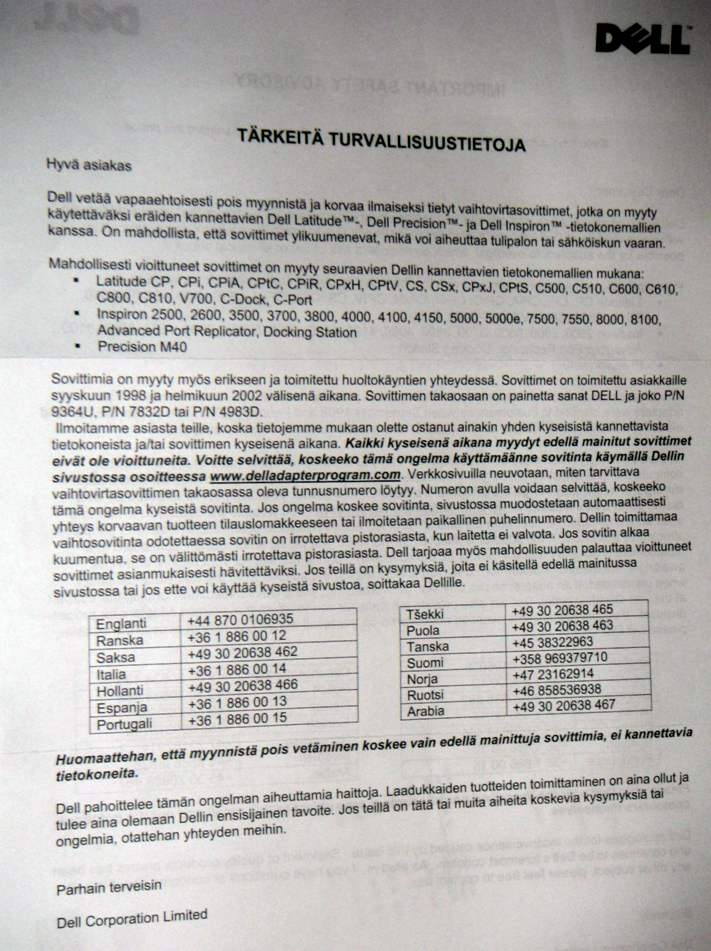 DELLin kirjeestä.