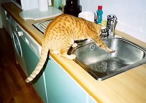 Goldi loves playing with water, but Kirppu hates water. Goldi tries to eat almost everything. When I am eating one end of a cheese sandwich, Goldi is soon eating the other end. |