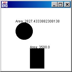 Kaikilla kolmella luokalla tulee olla metodi "public void drawIt(Graphics g)" joka piirtää kuvion sekä metodi "public double getArea()", joka palauttaa kuvion pinta-alan.