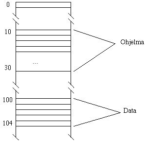 ensimmäisen osoite on 0, seuraavalla 1, jne. Muistin kokoa mitataan