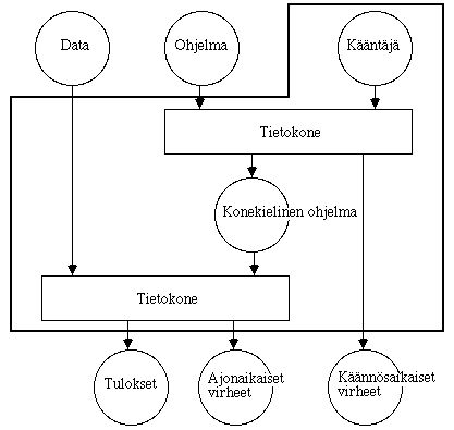 ohjelmakoodi muuntuu toimivaksi tietokoneohjelmaksi.