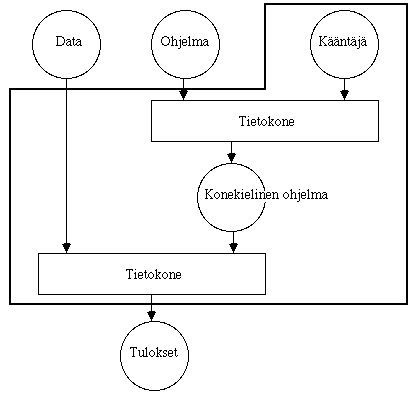 ohjelmakoodi muuntuu toimivaksi tietokoneohjelmaksi.