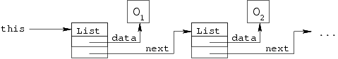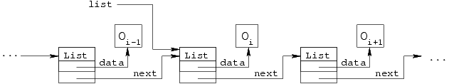 listaan sisältyvään olioon sekä viittaus seuravaan listan solmuun.