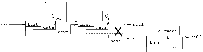 (6) list.next = new List(element, null);