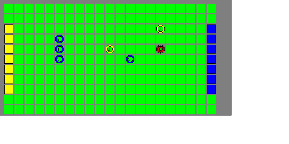 pelaajaa on samassa ruudussa samoin kuin kolme keltaista ruudussa, jossa