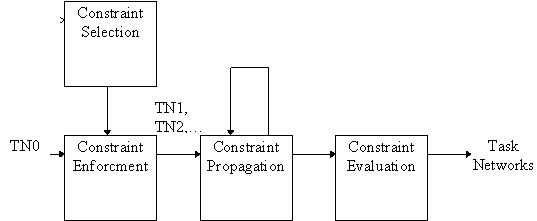 A task network is a collection of tasks that need to be accomplished, and constraints. Constraints define the order the tasks can be carried out, the way variables can be instatiated, and what literals must be true before or after each task is performed.