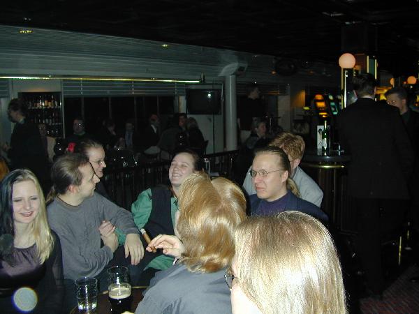 Lisää väkeä baarissa. Tassu, Noozi, Swaani, Minka ja meeTu.